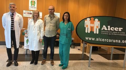 La entrada principal del Hospital Clínico albergó un acto informativo en el que la Federación Alcer instaló una mesa para manifestar su agradecimiento a todos los donantes y a sus familias. La coordinadora de trasplantes del CHUS, Carmen Rivera, la subdirectora de calidad y atención al paciente, Estrella López-Pardo, y el jefe del servicio de nefrología, Cándido Díaz, se acercaron para apoyar este agradecimiento público a las familias que con su decisión salvan vidas.