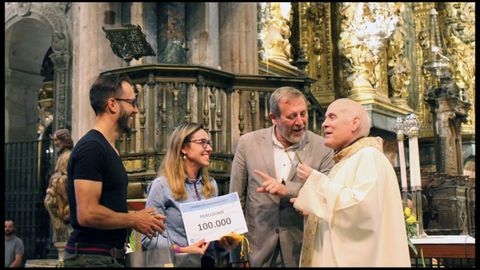Una pareja de brasileños que llegaron en bicicleta son el peregrino 100.000 de este año