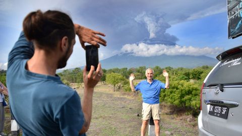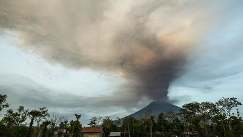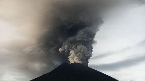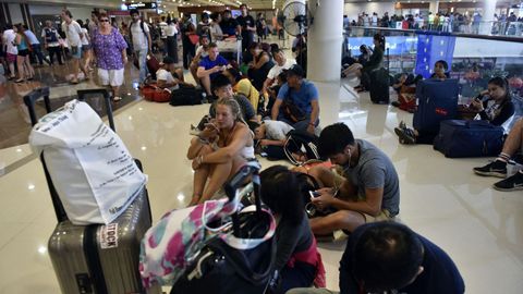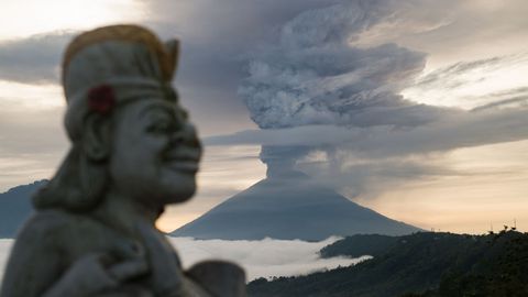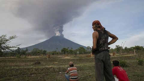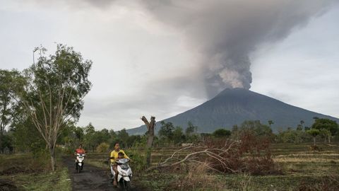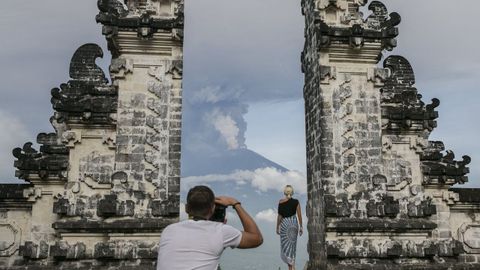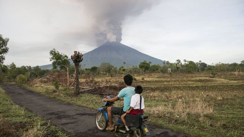 Entre los perjudicados por el cierre de la terminal está esta pareja compostelana que relata para Radio Voz las consecuencias de esta grave situación que deja desde el sábado una gran columna de ceniza en la zona. Los santiagueses no están en el área de exclusión marcada por las autoridades, y que afecta a un radio de hasta diez kilómetros desde el monte Agung. Desde la lejanía aclaran que ya conocían desde hace días que se había reavivado la actividad sísmica en la zona, en unas jornadas, además, en las que las condiciones meteorológicas son adversas. Indonesia está en temporada de lluvias.