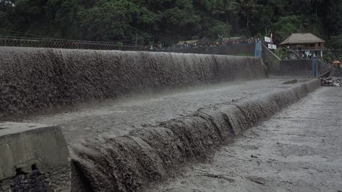 Una nube con las emanaciones del Agung se mueve en la actualidad en dirección estenoreste hacia el mar y la isla de Lombok, aunque podría cambiar si el viento rola. A su vez, Nugroho advirtió de la existencia de lahares, como se llama a los flujos de sedimentos piroclásticos y agua que se movilizan desde las laderas del volcán y cuya situación se ve agravada por la temporada de lluvias en Indonesia.