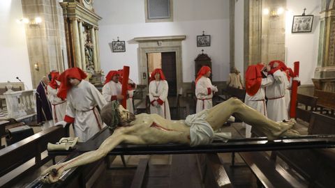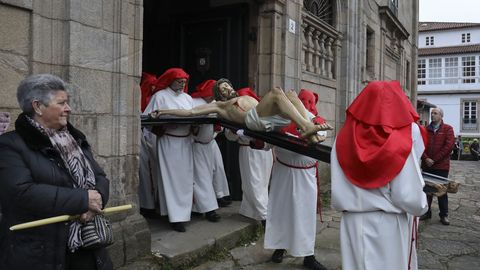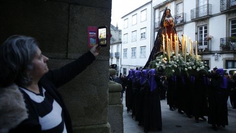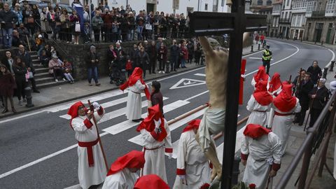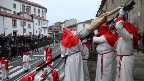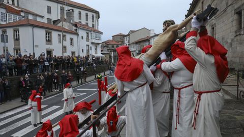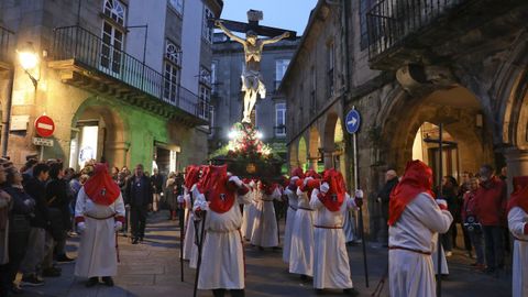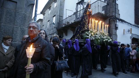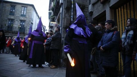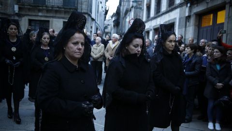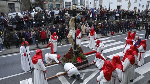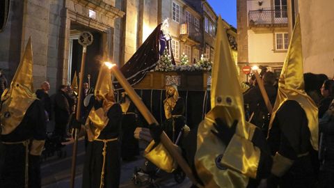 16 abr 2019 . Actualizado a las 08:49 h.La procesión de Nosa Señora da Humildade recorrió ayer el casco antiguo y hoy fieles, vecinos y visitantes pueden disfrutar de dos. A las 21.00 horas, saldrá de la iglesia de las Mercedarias el Santísimo Cristo de la Paciencia. Después, a las 22.30 horas, la cofradía de la Vera Cruz partirá de San Francisco con la procesión del Huerto y Prendimiento, que hará una parada en Praterías.