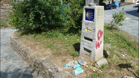 Manda también la limpieza, porque el tramo final de la principal ruta jacobea está literalmente impecable, a lo cual ayuda el Concello de O Pino instalando unas papeleras a las que solo se puede hacer una crítica: son azules, color desafortunado en el entorno. Pero, con una excepción -lo cual no deja de ser curioso-, en todas ellas la basura depositada había sido recogida unas horas antes.