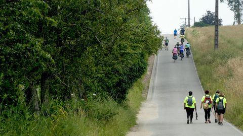 El paisaje es típicamente rural, con explotaciones ganaderas aquí y allá, vacas que deberían de estar cansadas de tanta fotografía, mugidos que por lo general son los únicos sonidos que va a oír el peregrino junto con los trinos de los pájaros y, de vez en cuando, el motor de un coche que se mete por donde debería estar prohibido. De hecho, ley en la mano lo está, pero no se ve nada material que lo impida. Urge colocar algo tan sencillo como una piedra de respetable tamaño.