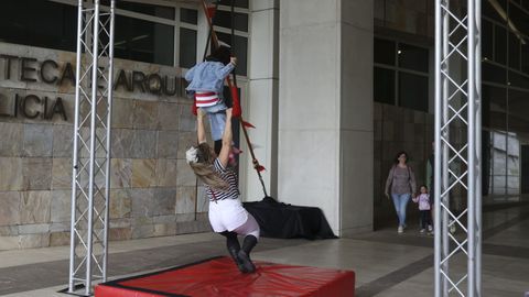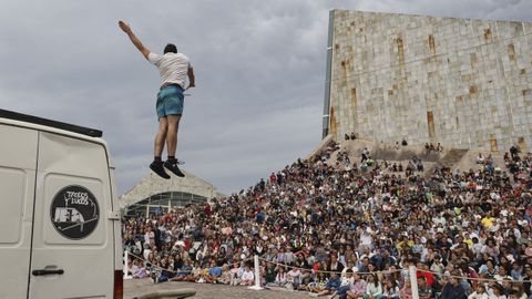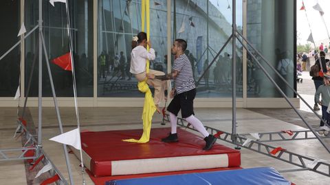 Todos alucinaron con el caracol gigante que se movía entre los diferentes espectáculos, hasta que el público se agolpó delante del grupo de trapecistas que volaron y llegaron a aterrizar encima de una furgoneta. Una fotografía para el recuerdo la dejaron el reguero de cometas que se ubicaron en una de las lomas del Gaiás, desde la que deslumbraron con sus formas y colores. La cita, organizada por la Consellería de Cultura, Lingua e Xuventude, reunió a 14 compañías y a más de un centenar de artistas, llegados desde Galicia, Italia, Guatemala, Francia, Portugal y Madrid. Además de las comparsas itinerantes, también se habilitaron zonas de juego e incluso se llevó a cabo la creación de un mural antipolución.