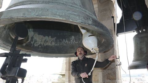 A campá maior da catedral que marca as horas en Santiago cumpre 350 anos