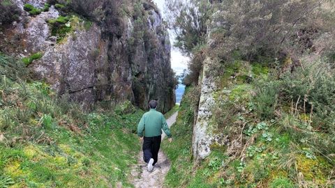 Y por su parte de atrás parte un sendero no recomendable para los muy pequeños (y, desde luego, en ningún caso para menores solos), circular y que se convierte en mirador de lo que se extiende a los pies. Bien cogiéndolo, bien no, al final se impone subir o bajar de vuelta por infinitos, cómodos, necesarios y cansinos escalones. Así se accede a la Rúa da Raíña Lupa, una asombrosa hendidura cuyo nombre sigue siendo un misterio, fuera del hecho de que fue la perversa Raíña Lupa la que mandó a los discípulos del Apóstol al Monte Ilicino, pensando y deseando que los animales salvajes dieran cuenta de ellos. Nadie se resiste a recorrer esos metros, justo lo contrario de lo que sucede cuando se planta ante la entrada a las profundidades del Pico Sacro, hazaña solo al alcance de los expertos espeleólogos. El resto de los mortales, que se alegre porque por allí no pululan ahora toros bravos.