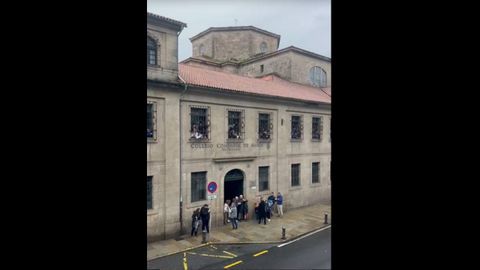 «Ya cuando salía, y pese a nuestra intención de ser discretos, no pudimos evitar decirle a los alumnos que Marina se despedía y los de los cursos más altos, los de secundaria y bachillerato —clases que además dan a la fachada principal, en la rúa Virxe da Cerca—, nos pidieron poner despedirla por las ventanas. Empezaron a corear su nombre y a mostrarle su cariño. Ella ahí se emocionó mucho. Estaba además fuera su familia esperándola para luego ir a celebrar el día», destaca Beatriz, aclarando que los docentes le habían dado momentos antes, y en el interior del centro, un ramo de flores.