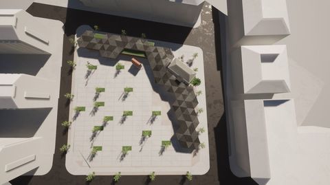 La segunda parte del proyecto corresponde al espacio cubierto en el que, una o dos veces a la semana, podrán instalarse productores locales para la venta de cultivos de proximidad. Tendrá una zona propia de aseos y de almacenamiento, y cuando no estén los puestos de productos de proximidad podrá aprovecharse para otros usos, como lugar de reuniones o zona de juegos infantiles. Además, el anteproyecto diseña este espacio con paneles solares y de forma que permita aprovechar el agua de la lluvia. La parte que ahora funciona como aparcamiento público se transformará en una plaza y también se regulará el uso de parte del espacio como zona de estacionamiento, con árboles y con la posibilidad de que, si fuese necesario, permita su uso como mercadillo de distintos productos.