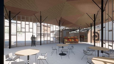 El acceso principal al mercado será con un vestíbulo de cristal a instalar junto a la edificación existente, lo que permitirá ver el hórreo de la parcela desde la entrada. Y desde el vestíbulo se podrá acceder a la zona de cafetería y al espacio habilitado como aparcamiento. Una vez adjudicada la redacción del proyecto, y que este documento recoja el coste de la inversión, el Concello deberá licitar su construcción. «Trátase dunha obra moi importante e necesaria para Ames. Cubrimos unha demanda que vai axudar a dinamizar o comercio local», afirma el regidor, Blas García, que confirma que el Concello está buscando financiación para ejecutar el proyecto, con un coste estimado que supera el millón de euros.