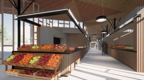 El proyecto técnico planteado por el Concello consta de tres espacios diferenciados. El primero de ellos es el mercado propiamente dicho, que tendrá doce puntos de venta. Ocho puestos serán para frutas, verduras, pan y derivados. Los cuatro restantes se los repartirán a partes iguales puestos de carne y pescado, y cada uno de ellos tendrá espacio para una cámara de frío independiente. Este edificio cerrado tendrá una cafetería con una zona para la preparación y degustación de productos. Y sobre ella estarán las oficinas de todo el mercado.