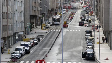 La obra de humanización de la avenida Rosalía de Castro a su paso por Ames inicia su recta final