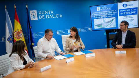 13 sep 2025 . Actualizado a las 05:05 h.La conselleira de Vivenda e Planificación de Infraestruturas, María Martínez Allegue, junto con el secretario xeral técnico Yago Borrajo, firmó con el alcalde de Ordes, José Luis Martínez Sanjurjo, el convenio para las obras de humanización del Campo da Feira de Mesón do Vento. La inversión se acercará a los 950.000 euros, con una aportación del 60 % de la Administración autonómica: a esos 566.000 euros se unirán los 378.000 que parten de las arcas municipales.
