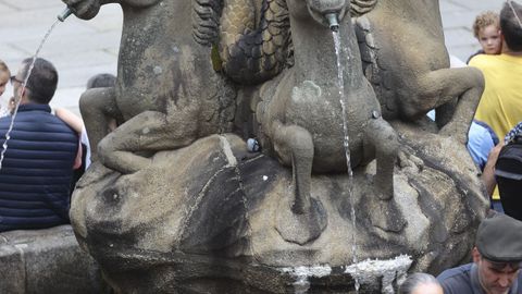 La nueva moda de los turistas en Santiago: «Ahora llenan con piedras la fuente de Praterías»