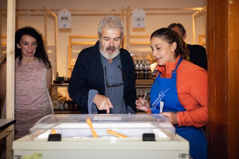 «Ao chegar Lorenzo Caprile ao noso posto explicáronlle a nosa traxectoria e idea. El dixo, sen embargo, que non lle gustaba moito o doce. Aclareille que os nosos xeados, ao ser naturais, case non levan azucre. Animámoslle en concreto a probar o de amorodo e sorprendeuse moitísimo. Dixo: ''Esto no es la fresa que se vende en las heladerías''… Remarcou que o xeado estaba moi ben. Eu expliqueille entón que os amorodos, único ingrediente do xeado, proveñen de Carral, de Frutas Gueixade», aclara la heladera Brígida Hermida. «Para min é un orgullo que diga iso. Mesmo bromeei con el. Comenteille que, aínda que non vendese nada na feira, eu o mercado xa o fixera co que me acababa de dicir…», añade agradecida. «Coido, en calquera caso, que o evento, sobre todo ao ser a primeira edición, tivo moi boa acollida», reconoce la heladera.
