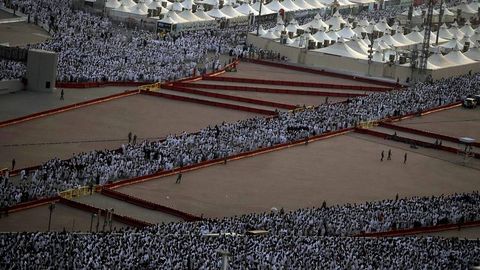 A pie, en autobús o en tren, unos 1,7 millones de peregrinos pernoctarán en un gigantesco campamento instalado en Mina, una llanura árida en las inmediaciones de la ciudad santa saudita.