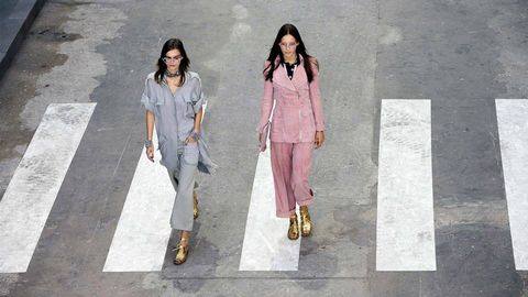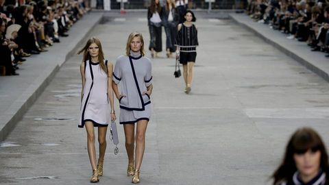 El representativo «tweed» de la casa francesa apareció entre los primeros conjuntos sobre una calzada tan bien reconstruida que incluía charcos y socavones.