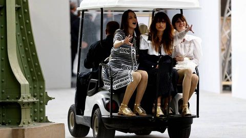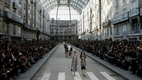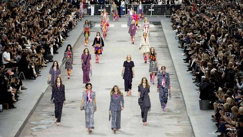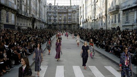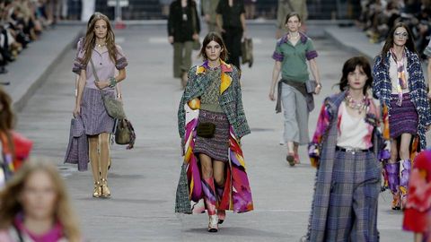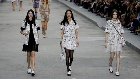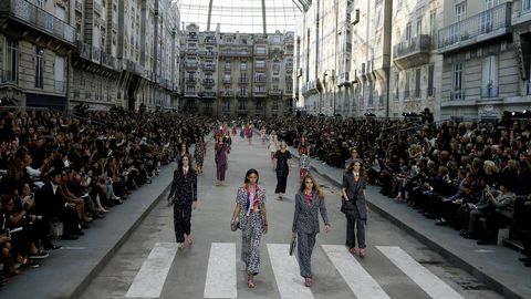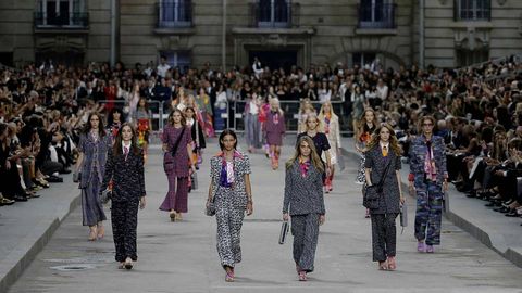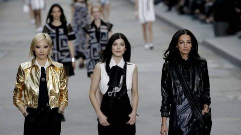 Chanel también rompió la cotidianeidad de la pasarela al hacer que el ruido de las manifestaciones se alternara con el de la música y que las modelos, entre las que se encontraban jóvenes y no tan jóvenes, caminaran en grupos o por parejas.