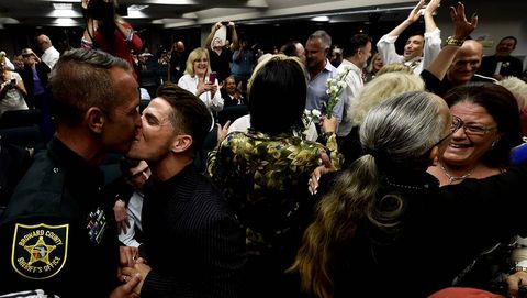Las televisiones estatales recogieron el momento en que una pareja gay residente en Cayo Hueso (condado de Monroe), en el extremo sur de Florida, Aaron Huntsman y William Lee Jones, contraían matrimonio vestidos de esmoquin en la escalinata de un tribunal de esa ciudad, rodeados de amigos, parientes y una multitud de curiosos que vitoreaban a los novios. Escenas parecidas se registraron en otros condados, donde se expidieron cerca de un centenar de licencias de matrimonio.