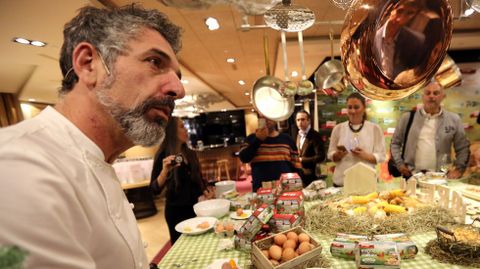 04 nov 2016 . Actualizado a las 05:00 h.La alta cocina está llena de ingredientes sencillos y de uso cotidiano. Buena prueba de ello dio ayer en Madrid el chef gallego Pepe Solla, quien protagonizó un showcooking en el que contó, como uno de sus ingredientes principales, con un producto tan común como el huevo. Eso sí, utilizó uno de corral procedente de las granjas de la cooperativa ourensana Coren. La empresa acaba, precisamente, de aliarse con el grupo El Corte Inglés, que a partir de ahora servirá estos huevos de corral en todos sus restaurantes y cafeterías.