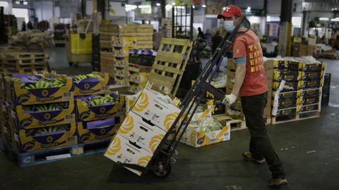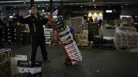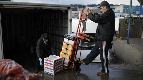 Nada más llegar, estacionan el furgón en uno de sus muelles, cogen un carro y recorren el recinto. Doce años haciendo lo mismo les abren todas las puertas y ellos van como Perico por su casa. A veces preguntan si «hay algo por ahí», otras los llaman diciéndoles «tengo algo para vosotros». Como así les avisó Alberto González, de Almacenes Goal. Un hombre que dice mientras les entrega varias cajas de setas que «si no nos ayudamos entre nosotros ahora cuándo va a ser».
