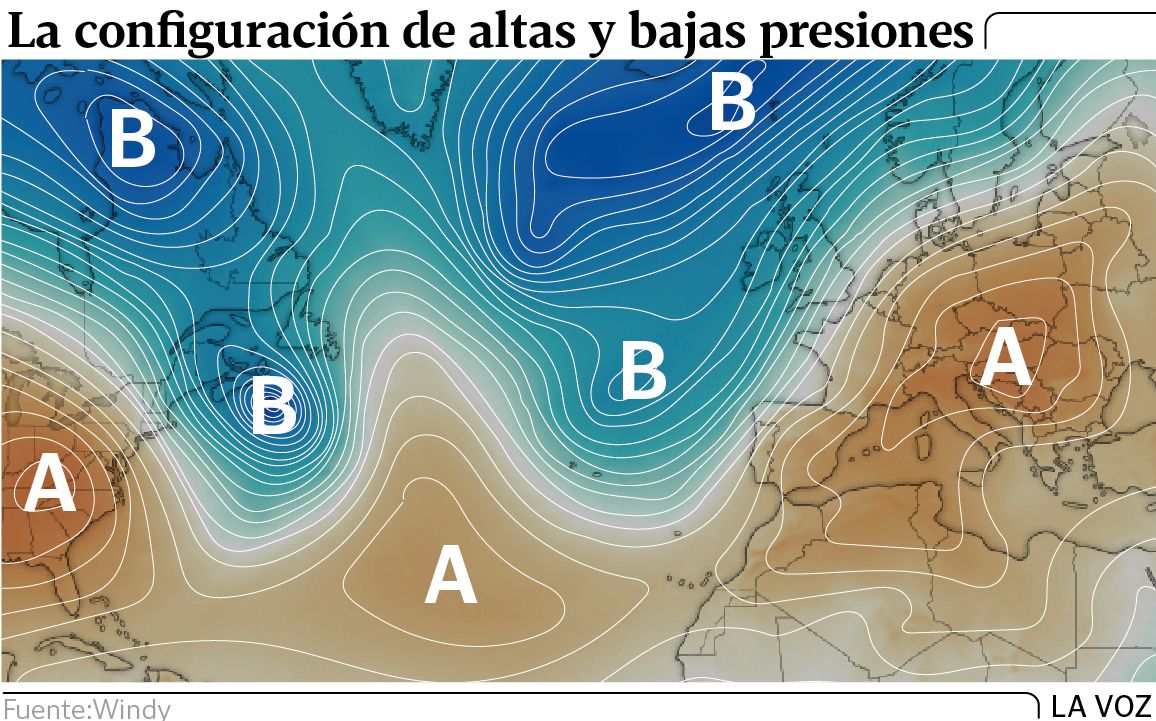 04 nov 2025 . Actualizado a las 10:56 h.Galicia vuelve a quedar a merced de la corriente en chorro. Esta semana adoptará una configuración meridional, con meandros que ascienden y descienden como si fueran valles y montañas. En los valles, zonas donde el aire frío desciende desde latitudes polares, se forman las borrascas. En cambio, en las montañas de la corriente, el aire asciende y refuerza las dorsales anticiclónicas que estabilizan la atmósfera.