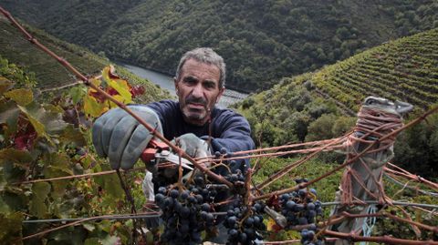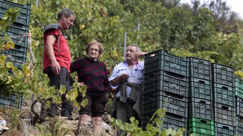 «A semana pasada parouse porque con toda a auga que viña a uva tiña falta de grao alcólico», explica Manuel Pérez en su viña de Soutochao, en la parroquia Doade. Él y la docena de vendimiadores que estaba con él contaban con terminar ayer mismo la recogida de esa finca y con sacar de ella 3.000 kilos de uva. «Non hai que agardar máis -explica este viticultor, que vende su uva a rectoral de Amandi, la mayor bodega de la denominación de origen-, porque agora máis graduación xa non vai coller e se volve chover hai perigo de que se estrague».