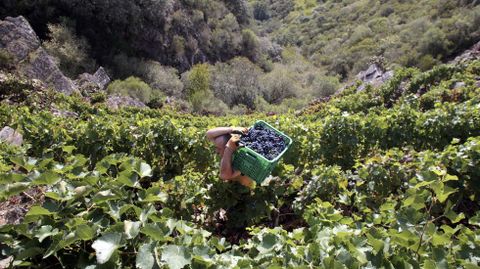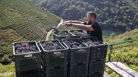 El buen tiempo da un empujón a la recogida de uva en la Ribeira Sacra, donde esperan superar las cifras del 2020