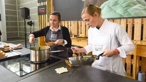 Otras veces el emprendimiento no llega mirando hacia el pasado sino al futuro. Les pasó a Keila y Edurne, de Nigrán e inventoras del chorizo de calabaza, bautizado como calabrizo. A ellas las unió, como amigas y empresarias, su interés por la alimentación de sus hijos: «Nos conocimos en el colegio de los niños hablando de si les dábamos de comer esto o lo otro», indican. De ahí, sumando fuerzas con un amigo cocinero y teniendo en cuenta que una de ellas es ingeniera agrónoma, comenzaron a sacarle jugo a la materia prima de la huerta gallega. Y ahora venden desde callos a fabada vegetal, con su calabrizo dando sabor.