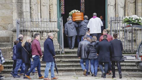 La salida del cadáver del templo fue uno de los momentos más emotivos tanto para la familia como para los amigos, conocidos y compañeros. Una de las personas más afectadas era el patrón del barco, Iván Carreño, con quien trabajó durante muchos años a bordo, pues era uno de los más veteranos de la tripulación del cerquero portosinense.