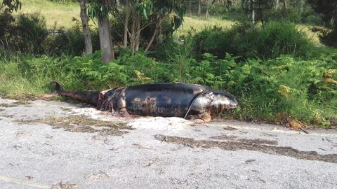 Desde ahí llegó a un cruce de Guxín, en Corme Aldea, no desplazado obviamente por el agua, sino por otro motivo. Lois García Carballido, alcalde pontecesán, explica que tuvieron conocimiento de que la Xunta ofrece colaboración para la recogida de animales de más de cuatro metros, pero para ello han de ser llevados a un lugar a donde la llegada del camión sea posible. Y depositaron temporalmente el caldeirón en este espacio retirado con carretera asfaltada, a la espera de recibir respuesta de la Xunta. Llegó ayer: colaborará, y anunció la retirada para ayer por la tarde o para hoy. Después el Concello limpiará y desinfectará.