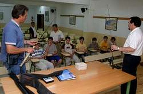 02 jul 2005 . Actualizado a las 07:00 h.?as vacaciones escolares ya están aquí, pero en el instituto Val do Asma hubo ayer clase. No fueron de matemáticas, ni de historia, ni de mecánica, sino de cañas, sedal y cebos. Un puñado de pescadores expertos hicieron de profesores para un heterogéneo grupo de alumnos con edades comprendidas entre los 7 y los 56 años. Es la primera escuela de pesca de Chantada y la organiza la asociación local de pescadores. La mayoría de los alumnos de esta peculiar escuela ya saben lo que es pescar. Xosé Eiré está en el grupo que acudió a las primeras clases de ayer por la mañana, las de cucharilla. Él no necesitó muchas explicaciones para atar el cebo al sedal con el nudo que los monitores les enseñaron. «Yo ya pesco, sí, pero hay cosas que no conozco sobre las distintas modalidades», explicaba este chico de 12 años durante la clase. Ninguno de los seis monitores que imparten las clases tienen experiencia docente. Son pescadores experimentados, elegidos por su dominio de las distintas técnicas incluidas en el programa. Nonito Otero y Francisco Gómez se estrenaron ayer hablando de cómo pescar a cucharilla para los doce chavales que se apuntaron a esta modalidad. Una buena parte de ellos ya tienen nociones básicas, pero los profesores se lo plantearon como si todos fuesen novatos. Empezaron por la caña y sus características, siguieron por las partes de un carrete y acabaron hablando de los tipos de cucharillas más recondables en ríos pequeños como el Asma. Mucha teoría, pero necesaria para conseguir que, como dijo Francisco Gómez, los alumnos llegasen a dominar la caña con tanta precisión como para «lanzar y meter la cucharilla en un vaso». Muchos de los participantes en la escuela se apuntaron para perfeccionar su técnica en especialidades que no dominan. Es el caso de Daniel Fernández, el alumno de 56 años, pescador habitual a mioca pero interesado en aprender a manejar la pluma. Otros apreciarán más las salidas al río Asma, que se harán en la zona de O Sangoñedo. Allí podrán comprobar que es cierto lo que cuentan los monitores sobre la preferencia de las truchas por los recovecos de las orillas o los remansos que forman las piedras grandes en los ríos con corriente. También de recastado La escuela se prolongará durante toda la semana. Ayer se impartieron las primeras clases sobre el uso de la cucharilla, de cebo natural y de mosca. Hoy empezarán las de pluma y recastado, una técnica tradicional que apenas se utiliza ya. Como ya ocurrió ayer, durante las tardes de hoy, mañana y el resto de la semana los alumnos saldrán al río Asma acompañados por los monitores, que les explicarán cómo aplicar la teoría a la práctica. Esta experiencia terminará el sábado que viene con una recorrido por el río al que están invitados los diecisiete alumnos inscritos, y que será guiado por dos biólogos. «O que queremos é formar pescadores con conciencia, que non se acheguen ao río obsesionados só con sacar cantas máis troitas mellor». Ése es el objetivo de la escuela en palabras de Fernando Ibarra, el presidente de la asociación de pescadores de Chantada, que tenía la escuela entre sus objetivos desde que fue creada hace poco más de un año.