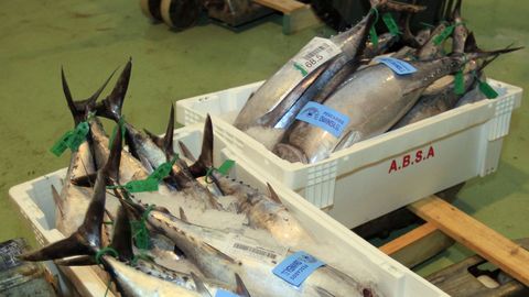 Empleando el arte de la cacea, menos barcos gallegos que nunca participan en esta campaña bonitera. Burela es la capital gallega del bonito del norte fresco, aunque no llegan a la decena las embarcaciones locales que lo capturan este verano. En esa lonja de A Mariña lucense se han subastado hasta ahora 685 toneladas, a una media de 4,30 euros el kilo.