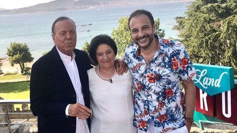 El humorista ha compartido a través de las redes sociales una fotografia junto a su madre y Julio Iglesias, que llegó a Galicia el pasado jueves. «Esta fin de semana miña nai presentoume ao seu novo mozo, parece bo chaval. A ver o que lle dura... #LandRoberJulioIglesias».