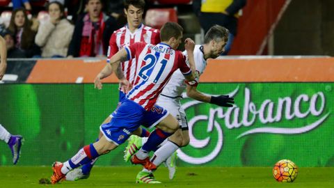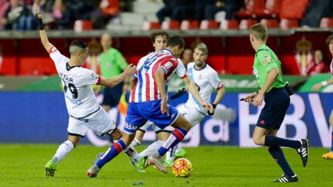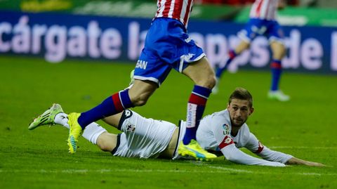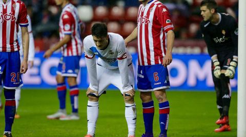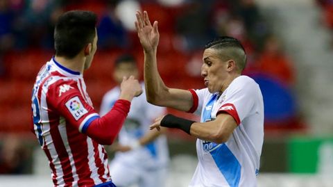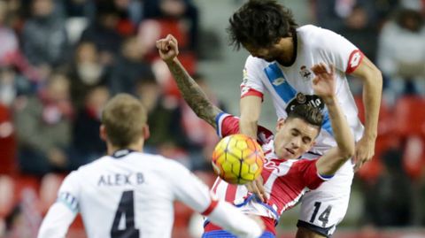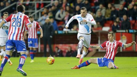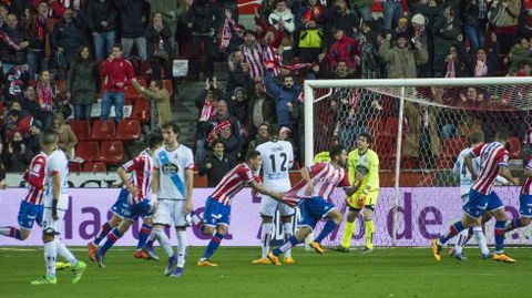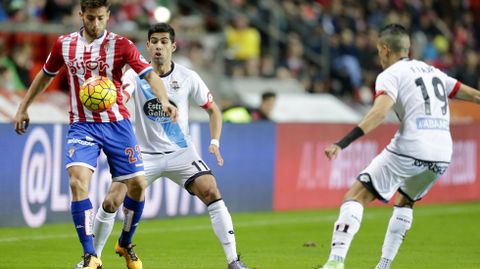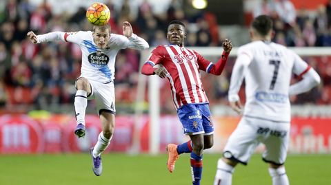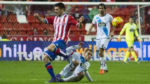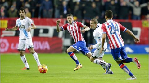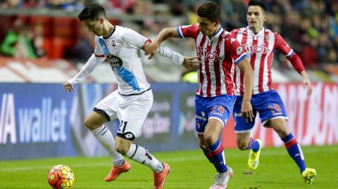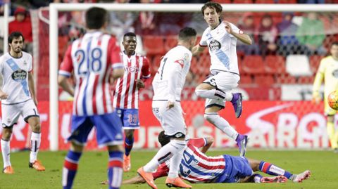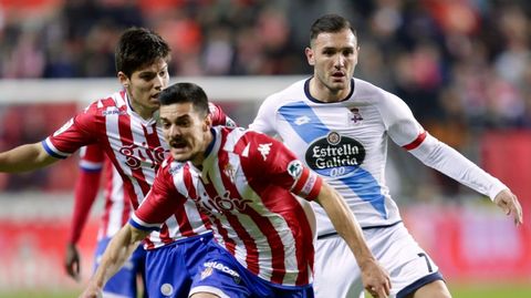 El Sporting-Dépor no fue sólo un derbi por la presencia de aficionados coruñeses en la grada. A los más de 2.000 blanquiazules en El Molinón se le añadió la salsa de un duelo de rivalidad, jugado con pie fuerte, pasado de revoluciones, animado por un césped deslizante y vertiginoso. Hubo por momentos más choque que juego, en dos equipos que prefieren tener la pelota como opción secundaria en su juego. Así, se plantaron Sporting y Dépor dispuestos a irse a la yugular mutuamente. Fue un panorama del que parecía sacar más réditos el conjunto asturiano, que expuso las imprecisiones del centro del campo coruñés y los problemas de Arribas en campo abierto.