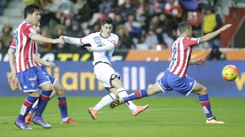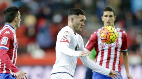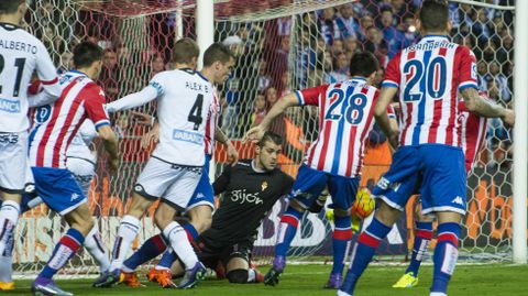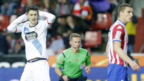 El 1-0 a la media hora fue neutralizado pronto por el dúo dinámico del Dépor. Lucas le ganó la acción con calidad y cuerpo a Carmona, ganó línea de fondo y cedió a Luis Alberto. El trallazo del gaditano resonó en El Molinón y sacudió la lluvia de las redes de Cuéllar. El precioso tanto igualaba el marcador pero demostraba la pegada y la calidad del ataque coruñés, la única línea capaz de imponerse en los duelos al Sporting. Fue así como estuvo cerca de darle la vuelta el Dépor al asunto, porque Luis Alberto tuvo un par de situaciones claras de disparo en los primeros minutos del segundo acto, y habilitó de manera perfecta a Cani, quien erró el pase de gol a Lucas.