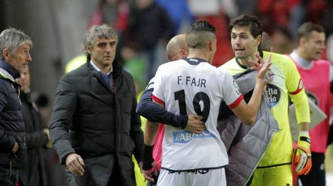 07 feb 2016 . Actualizado a las 01:58 h.Cuando tras finalizar el encuentro y la mayoría de futbolistas del Deportivo se dirigieron a la zona en la que estaban los aficionados blanquiazules para agradecerles su apoyo, Lux y Fayçal tuvieron una acalorada discusión, que finalizó con el marroquí yéndose al vestuario. Al parecer, el portero le recriminó que se retirara sin saludar a la hinchada. Momentos después, con sus compañeros ya en el vestuario, Fayçal regresó al campo y regaló su camiseta a la hinchada.