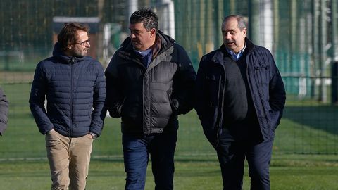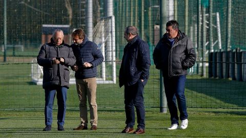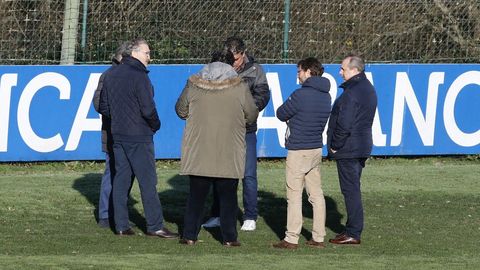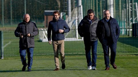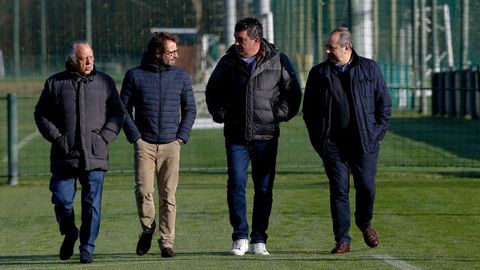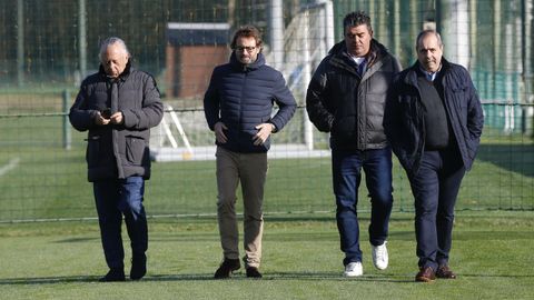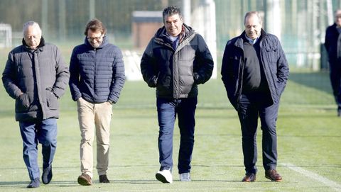 Los cinco miembros del consejo de administración han visitado a continuación las instalaciones de Abegondo, donde la plantila se entrena este sábado.