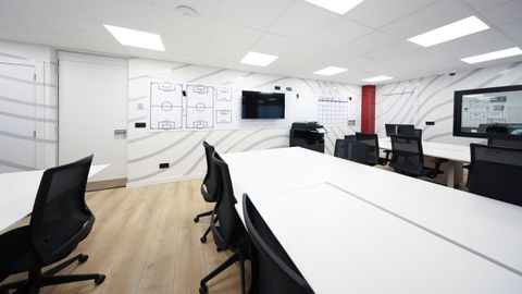 La reforma realizada hasta ahora en la ciudad deportiva ha supuesto un cambio radical en el interior del edificio principal. Y es que, más allá de los vestuarios, también se ha establecido una nueva área de cantera, una zona de despachos y una sala de prensa multiusos. En esta, además de albergar las comparecencias de Antonio Hidalgo, Fran Alonso y Manuel Pablo ante los medios, también se usa como sala para llevar a cabo charlas con las familias de los jugadores en etapa de formación y para la proyección de vídeos.