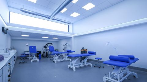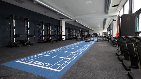 Ya son varias las fases del proyecto que se han culminado. Es el caso de un nuevo gimnasio destinado al equipo femenino y a la cantera. Cerca de 400 metros cuadrados en los que podrán ejercitarse hasta tres equipos a la vez (aproximadamente 60 personas) y que, además, se podrá dividir en diferentes estancias en caso de ser necesario. Completamente equipado y con un gran ventanal por el que observar uno de los campos, conecta con una sala de readaptación.