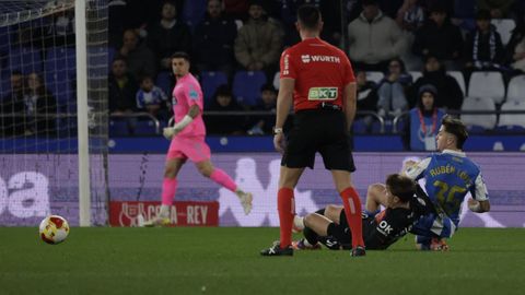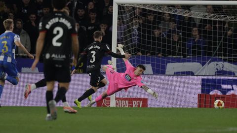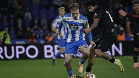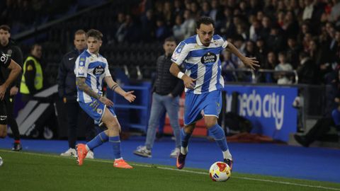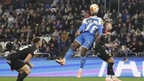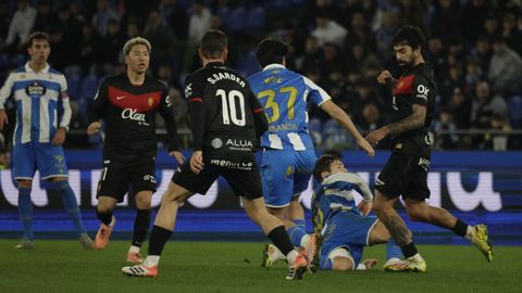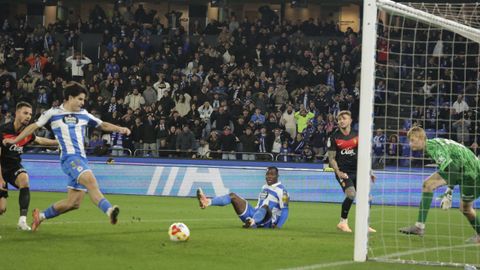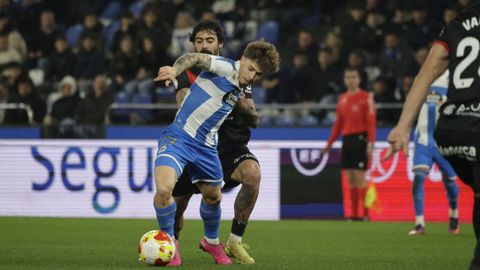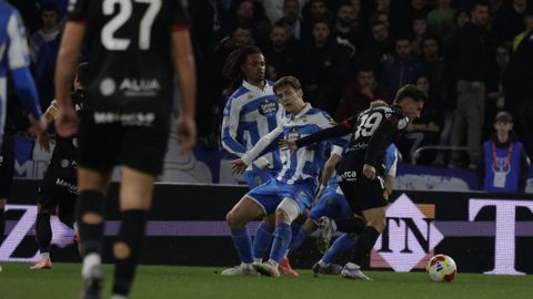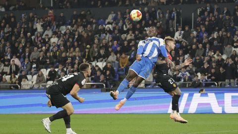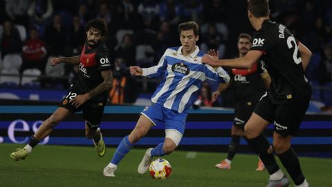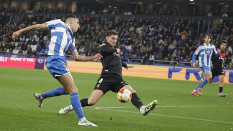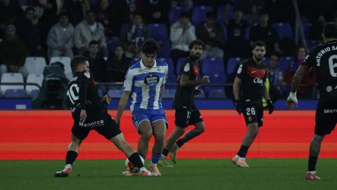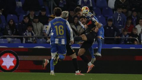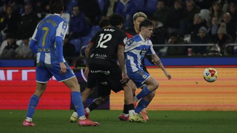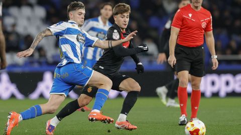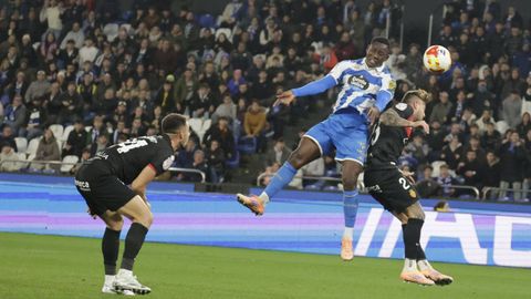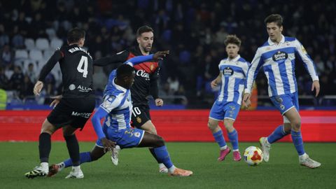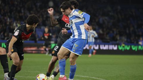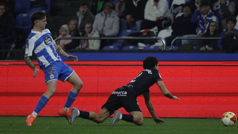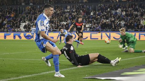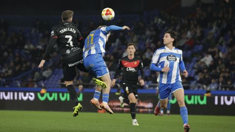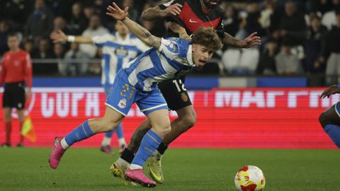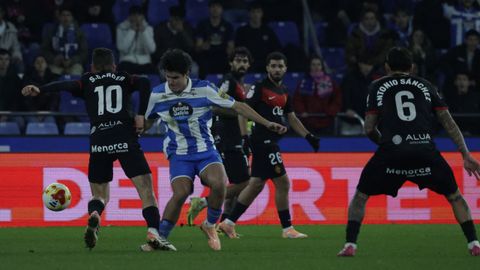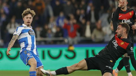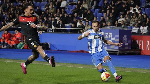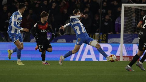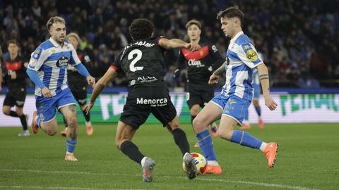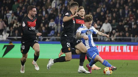 El triple susto duró en el cuerpo del Dépor, que no se estiró hasta después del ecuador del período, pero en un contragolpe claro Mulattieri abusó de individualismo y la jugada acabó quedando en nada. Ya poco antes del descanso, un disparo desde fuera del área de Llabrés que se fue a córner tras desviarlo Puerto con la punta de los dedos. Y la contestación inmediata del Dépor llegó en un buen centro de Quagliata, al que Mella llegaba por sorpresa al área, pero el canterano no afinó su cabezazo cuando estaba solo.