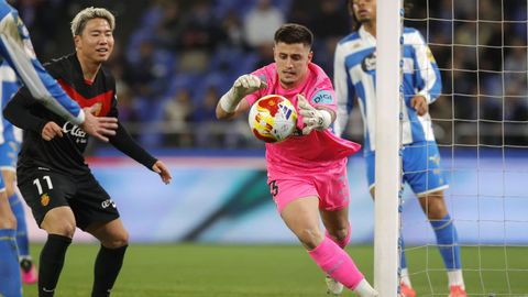 Los visitantes pudieron adelantarse en el desorden que rodeó el primer cuarto de hora del partido. Varios rechaces permitieron a Asano tomar la espalda de la defensa deportivista, pero en la carrera y el mano a mano frente a Puerto venció Barcia, que bloqueó su disparo. Pero no finalizó el peligro. En la salida del Dépor, un nuevo robo permitió a Mateu Morey llegar a línea de fondo y que, de nuevo tras varios rechaces, el meta detuviese el remate final del delantero del Mallorca. Con la línea defensiva local desordenada, de nuevo el japonés se plantó ante Puerto, pero cruzó demasiado su remate.