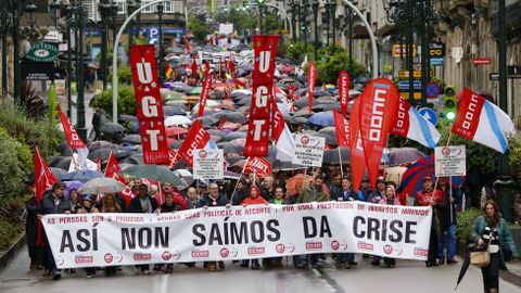 Los manifestantes han partido desde la calle Urzaiz y terminarán en la sede de la Xunta.