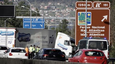 A todo esto se suma que es un kilómetro muy transitado porque concentra el transporte pesado que procede del nudo de Puxeiros. En unos pocos kilómetros se forman caravanas de camiones procedentes de Portugal, de los polígonos de O Porriño, del puerto de Bouzas o de Madrid. La mayoría se dirige a recoger o entregar mercancías en el puerto de Vigo o a cargar pescado a la lonja de O Berbés. Otros continúan para Marín, Vilagarcía, Santiago o A Coruña. Esta circulación intensiva hace que en unos pocos kilómetros, entre el aeropuerto de Peinador y el puente de Rande, se concentre una gran afluencia de vehículos de mercancías, lo que aumenta las probabilidades de que alguno de ellos se vea implicado en un siniestro vial.