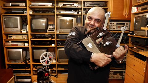 En su casa del barrio de Teis, Leiro ve pasar tesoros, pero lo que él acumula podría ser digno de un museo de la imagen. Un pathescopio de 1919 resume adónde ha sido capaz de llegar para contar con 35 aparatos en los que es capaz reproducir más de un centenar de sistemas diferentes de vídeo, audio y fotografía. Los ha comprado por todos los rincones del mundo, a veces para poder digitalizar una única cinta. «Yo nunca digo que no se puede, o que esa película está demasiado estropeada».