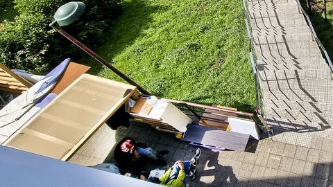 Las quejas no son nuevas, el invierno pasado ya hubo reclamaciones al Concello para que pusiese orden público, pero la preocupación se ha agravado en las últimas semanas, porque le trasiego de drogas y consumidores es mayor. Incluso han roto la puerta del garaje, A la vez, va prosperando el campamento construido con muebles viejos por las personas que viven a la intemperie. «Deben ir a un albergue», señalan los vecinos. Pero no quieren ir a un sitio donde no se les permita el consumo de sustancias. Un día vino la policía nacional y le dijo al presidente de la comunidad: en algún sitio tienen que dormir. Esta justificación no nos convence. ¡Que vayan pues a los soportales de la comisaría!», ironizan los residente que señalan también que «en la entrada del Ayuntamiento no se permiten instalar tenderetes y aquí los tenemos en una plaza pública».
