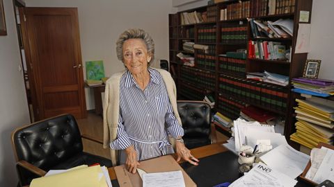 La abogada María Romana San Luis Costas, primer mujer inscrita en el Colegio de Abogados de Vigo, simboliza con su experiencia lo que les ocurre a muchos profesionales en Vigo. A sus 81 años, después de casi seis décadas de ejercicio, decidió pedir licencia para transformar su despacho de Urzaiz 86 en vivienda.