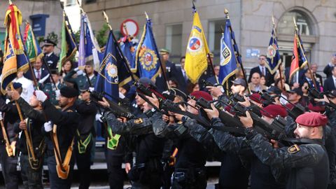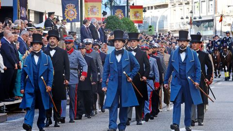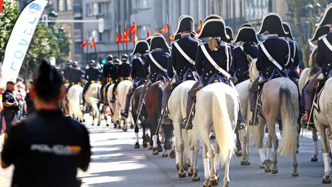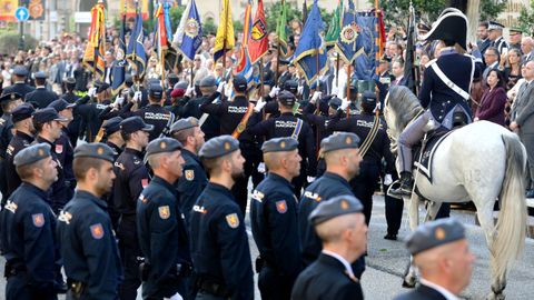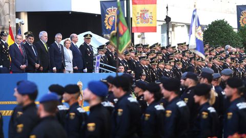 En el palco de autoridades estaban el alcalde, el presidente del TSXG Ignacio Picatoste, el presidente del Parlamento de Galicia Miguel Ángel Santalices, entre otros. En total, participaron 298 policías y mandos.