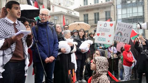 Se llama Samir Slim y el pasado julio echó de su restaurante a un grupo de israelíes que se presentaron en su negocio para increparle y provocarle. Él, grabándolo con su móvil, los echó. Ayer, a la izquierda de la pancarta, con el lema «Vigo con Palestina», explicó el por qué de movilizaciones como la de este sábado en Vigo: «Supone una gota más, una gota más que ayuda muchísimo. Nos lo dice la historia en casos como el de Sudáfrica ¿Cómo se arregló el problema en Sudáfrica? Solo cuando occidente llenó sus calles con gente que reclamaba a sus parlamentos que se solucionara aquello. Y esto, aquí, pasa lo mismo. El cambio verdadero empieza en las calles de Vigo y de cualquier ciudad de occidente».