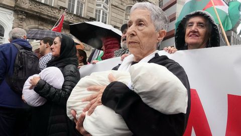 La movilización recorrió Urzáiz hasta la porta do Sol reclamando el fin del conflicto y denunciando las muertes y hambruna de niños y adultos a manos de Israel