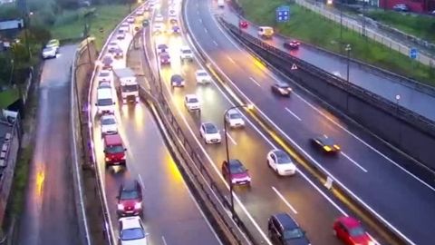 El atasco continuaba a las 9.15 horas a causa de las lluvias.